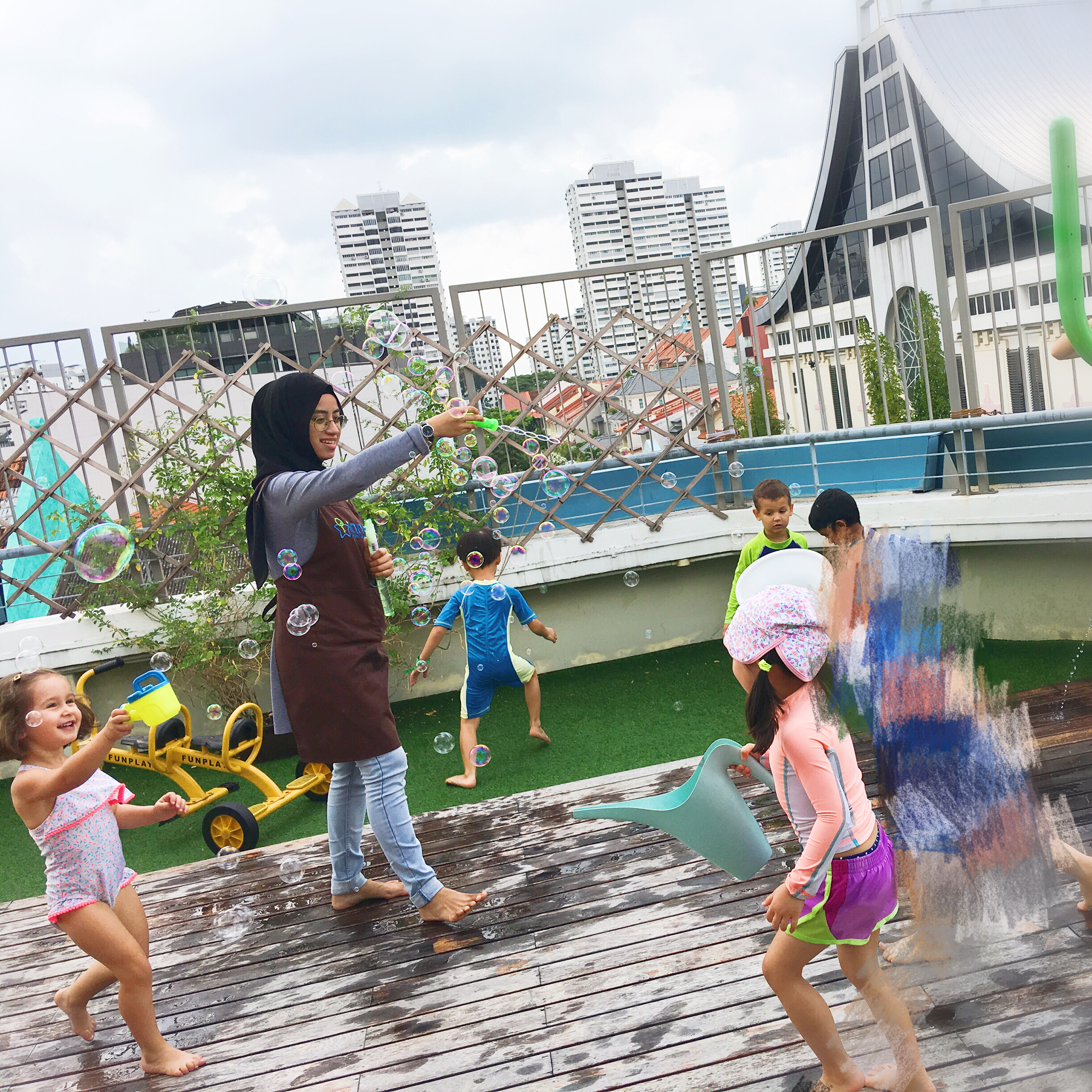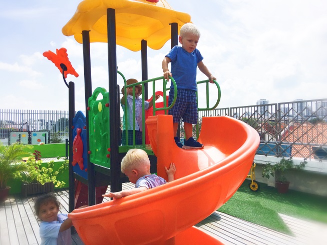 Children are exposed to diversity in classroom through social interaction with teachers and peers from various countries.